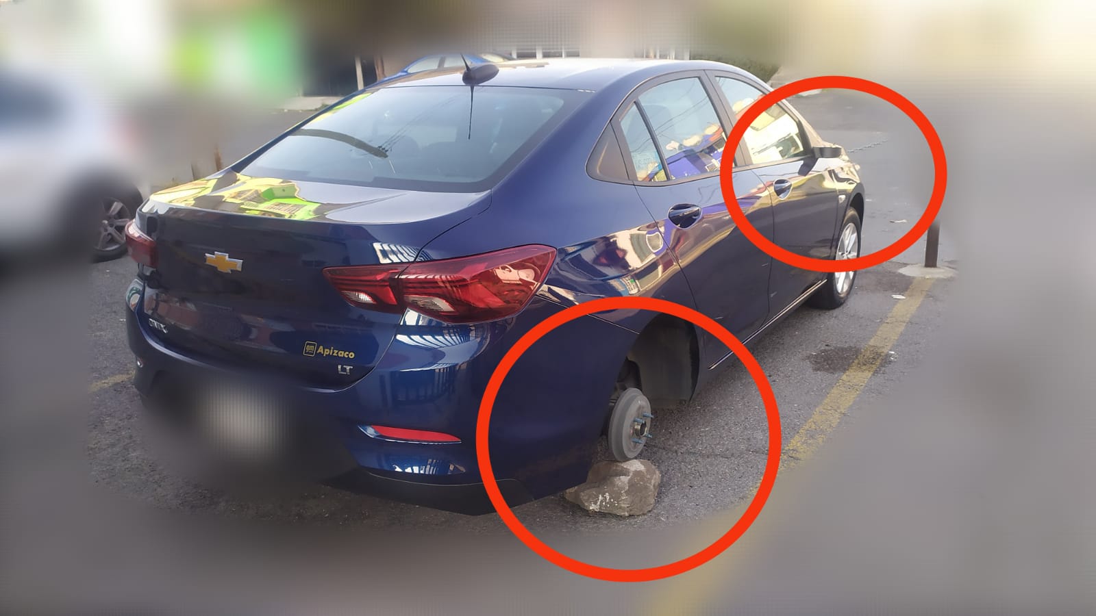 A pocas semanas en la misma zona, sustraen llantas, rines y espejo a auto de reciente modelo