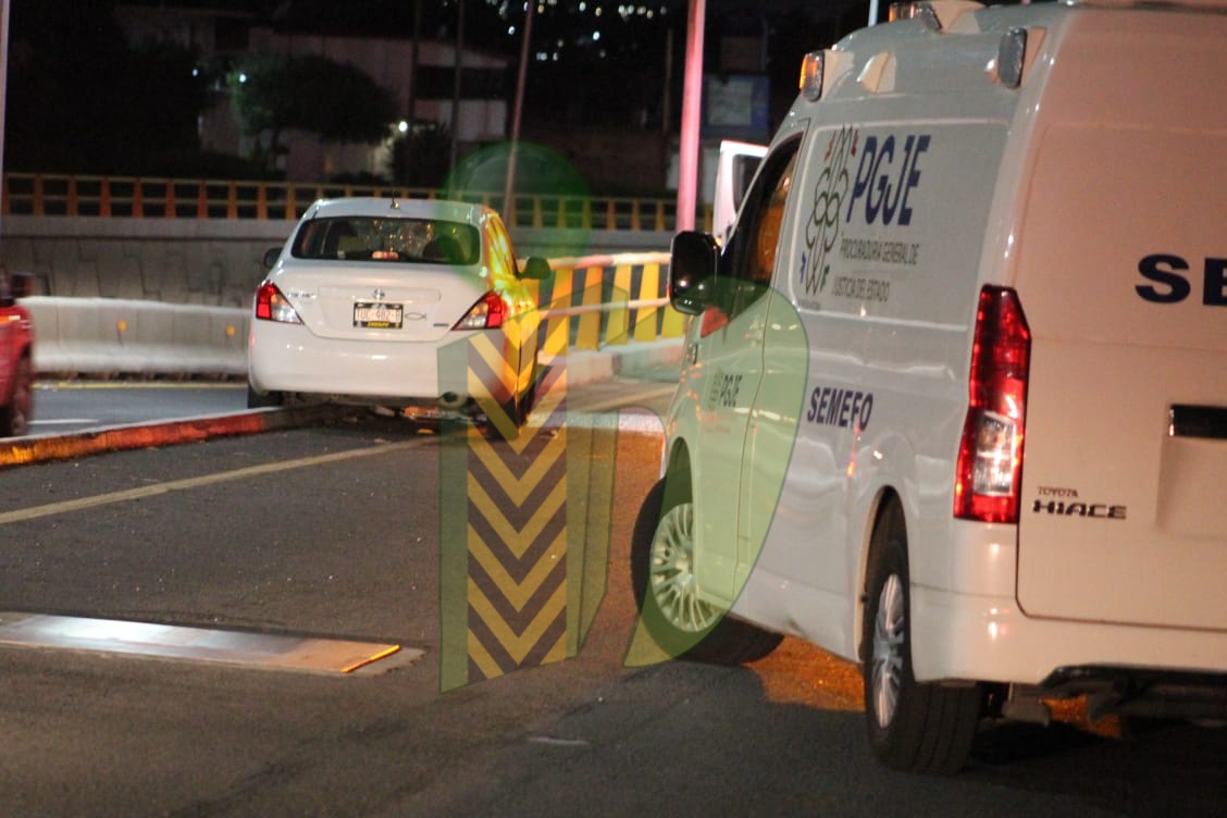 Poco después de las 02:00 horas de este lunes, con sentido a la capital y a pocos metros del puente peatonal que se ubica en el kilómetro 30 (zona con óptima iluminación artificial) como referencia el acceso principal a San Matías, elementos de Guardia Nacional (GN) y casi de forma paralela municipales de San Pablo, conocieron del hecho de tránsito que protagonizó el Nissan Versa blanco con placas de circulación TUC terminación B de Puebla, conducido por Ángel -N- de 61 años de edad que incrustó frontalmente contra el elemento de metal color amarillo cromo que acompaña el acceso a los carriles laterales.