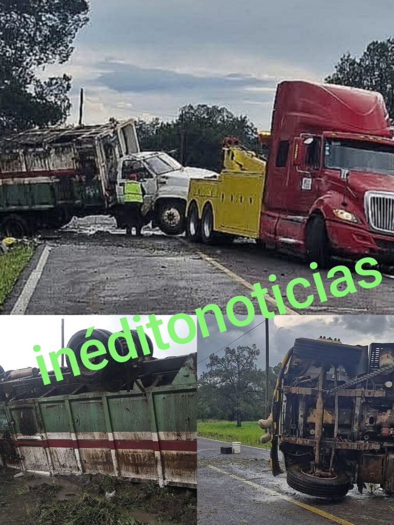 Este miércoles, salvan la vida los tripulantes del camión recolector de basura propiedad del municipio de Muñoz de Domingo Arenas en el estado de Tlaxcala, luego que cargado con derechos sólidos en tránsito por Atlangatepec y con destino al relleno sanitario; a causa de una falla combinada con el mal clima predominante en la zona, perdieran el control y la carretera hasta volcar y quedar ‘llantas arriba’.