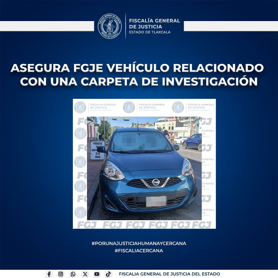 La Policía de Investigación de la Fiscalía General de Justicia del Estado (FGJE) aseguró un vehículo marca Nissan, tipo March, modelo 2020, relacionado con una carpeta de investigación.