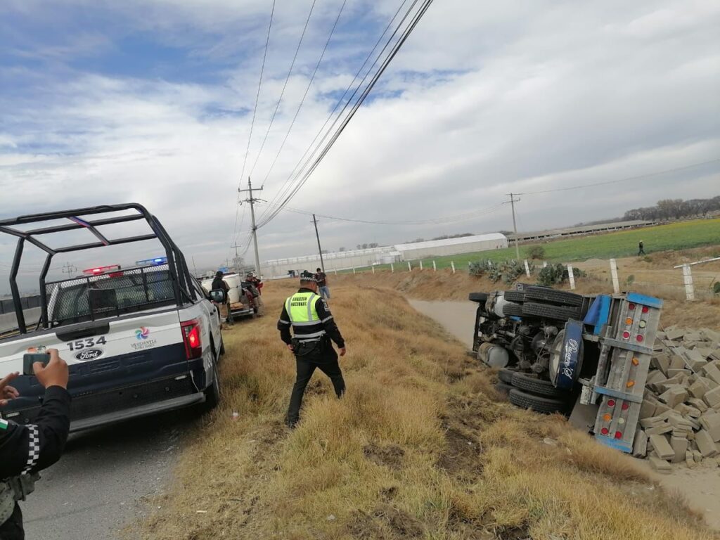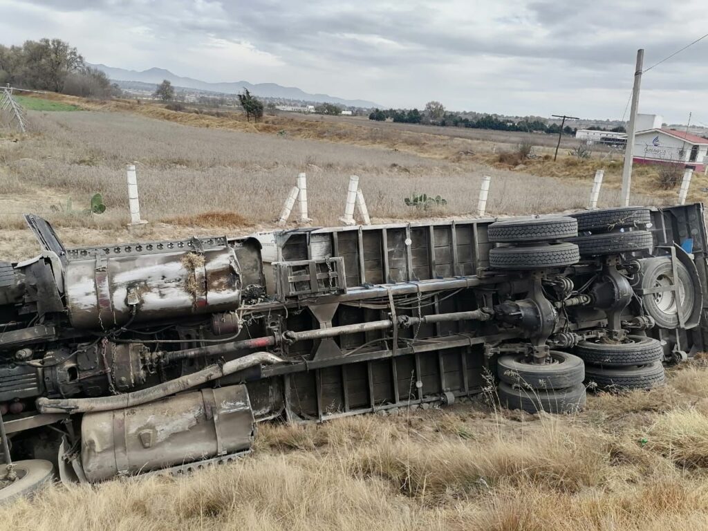 Huamantla, Tlaxcala, a 21 de enero de 2026.– La Dirección de Seguridad Pública, Tránsito y Protección Civil de Huamantla atendió oportunamente un hecho de tránsito tipo volcadura de un tractocamión registrado la mañana de este miércoles sobre la carretera México–Veracruz, a la altura del rancho Los Álamos.