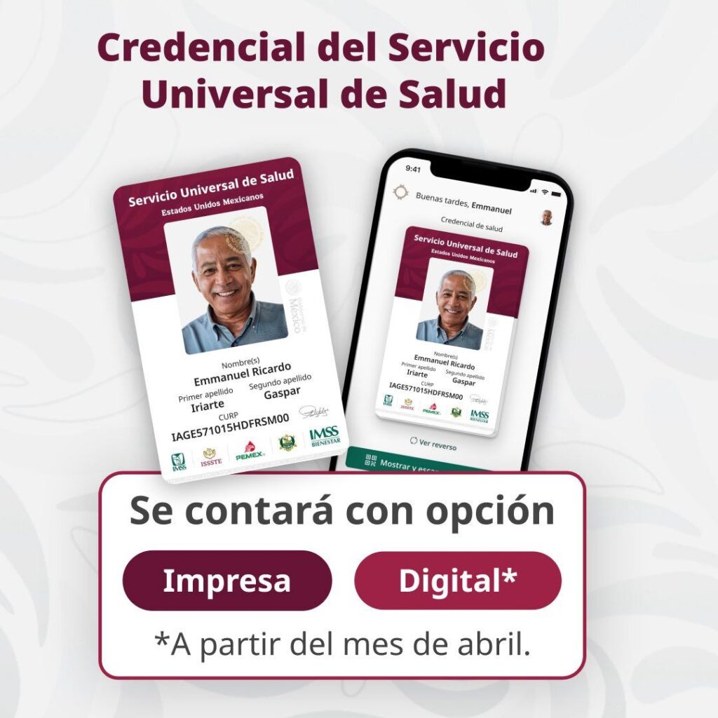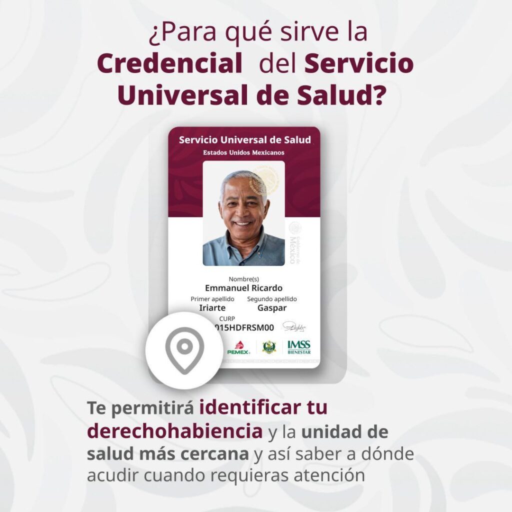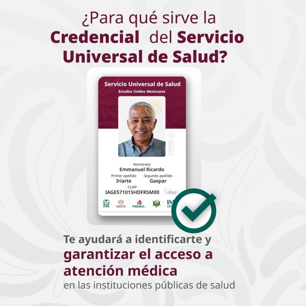 Y que además la credencial servirá como una identificación para acceder a una institución pública de salud en caso de requerir atención médica. Incluye a todas las instituciones públicas del sector: IMSS, ISSSTE, Servicios de Salud IMSS Bienestar, Pemex, Fuerzas Armadas e Institutos Nacionales de Salud.